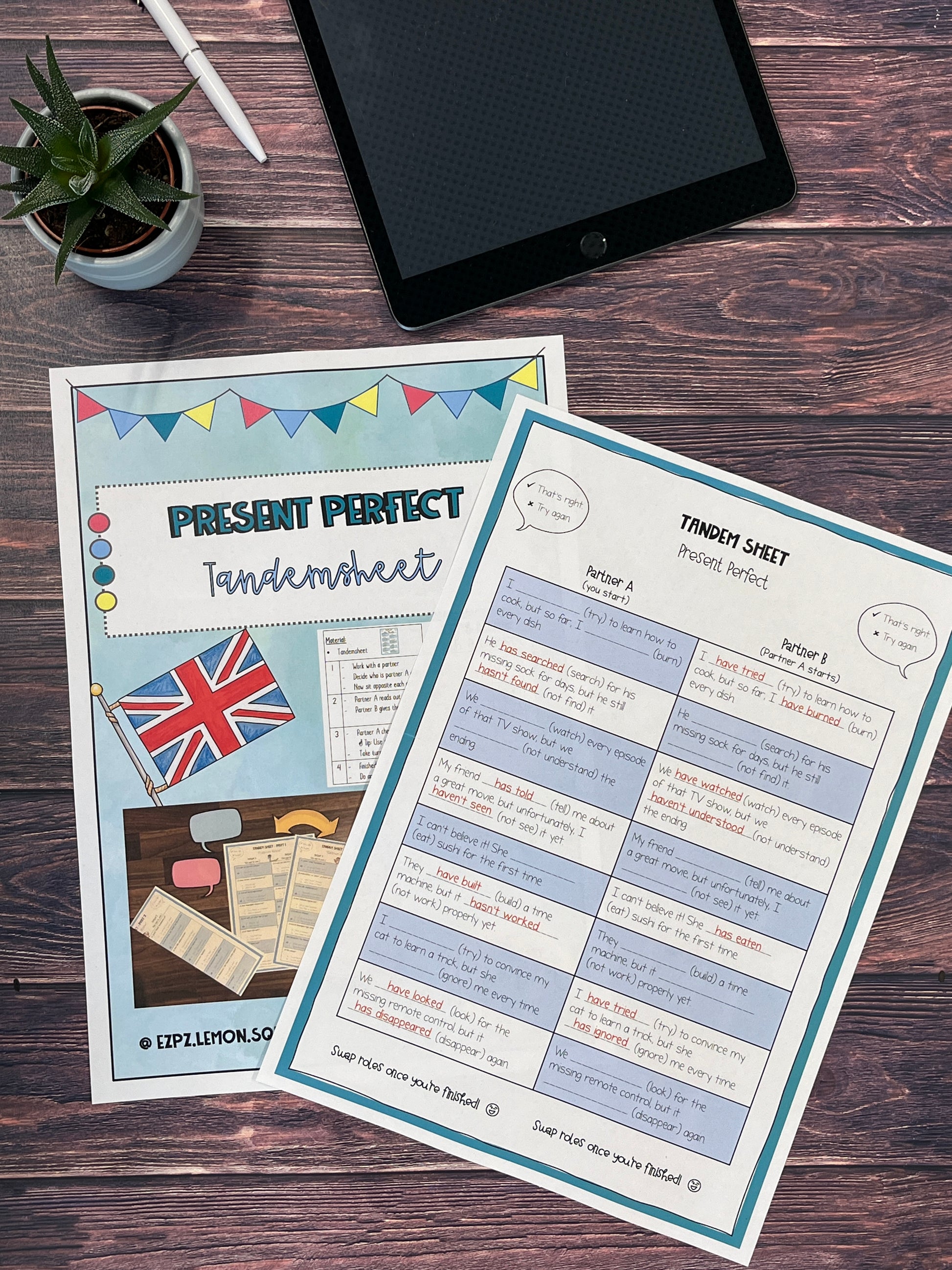 Ob zur Einführung oder Wiederholung – mit diesem Tandemsheet üben deine Schüler*innen das Present Perfect effektiv und mit Spaß!