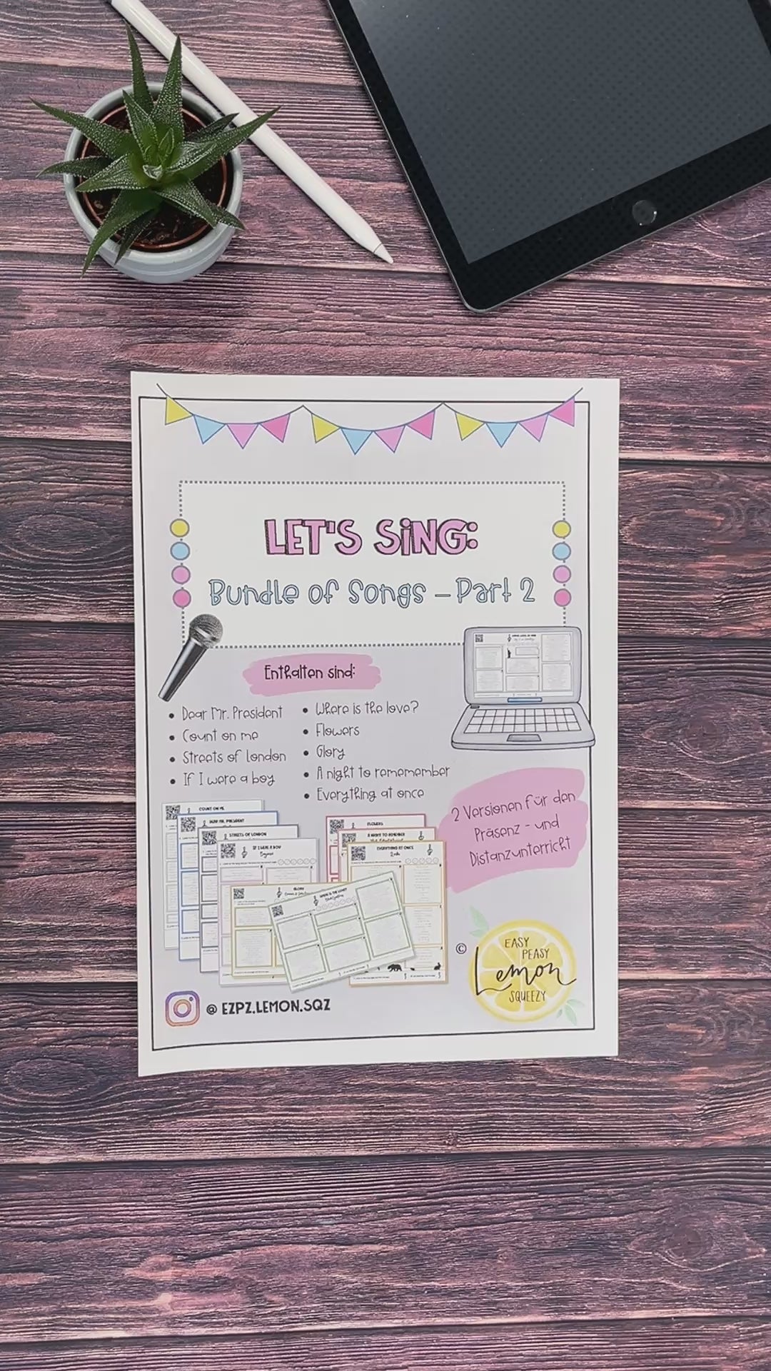 Singen im Fremdsprachenunterricht ist eine wunderbare Möglichkeit, die Hör-, Lese- und Sprachkompetenz deiner Schüler:innen auf kreative und motivierende Art zu fördern. Dieses Paket liefert dir sofort einsetzbare Arbeitsblätter, mit denen du die enthaltenen Songs abwechslungsreich und strukturiert in deinem Unterricht umsetzen kannst – perfekt für spannende Diskussionen, Hörverstehenstraining und kreative Sprechanlässe.