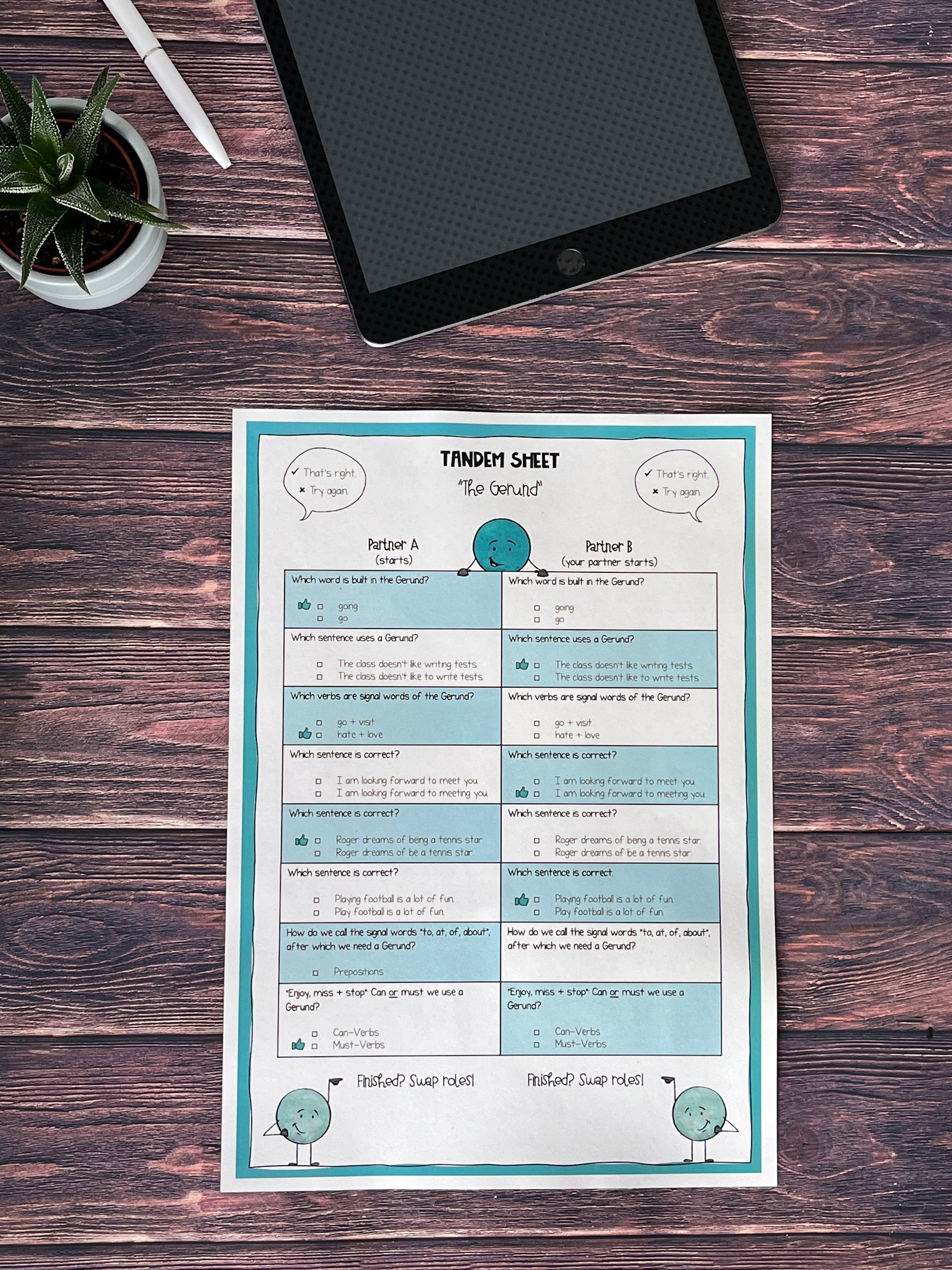 #gerund #englishgrammar #tandemsheet #sprechübungenglisch #grammatiksprechen #englischunterricht #aktivlernen